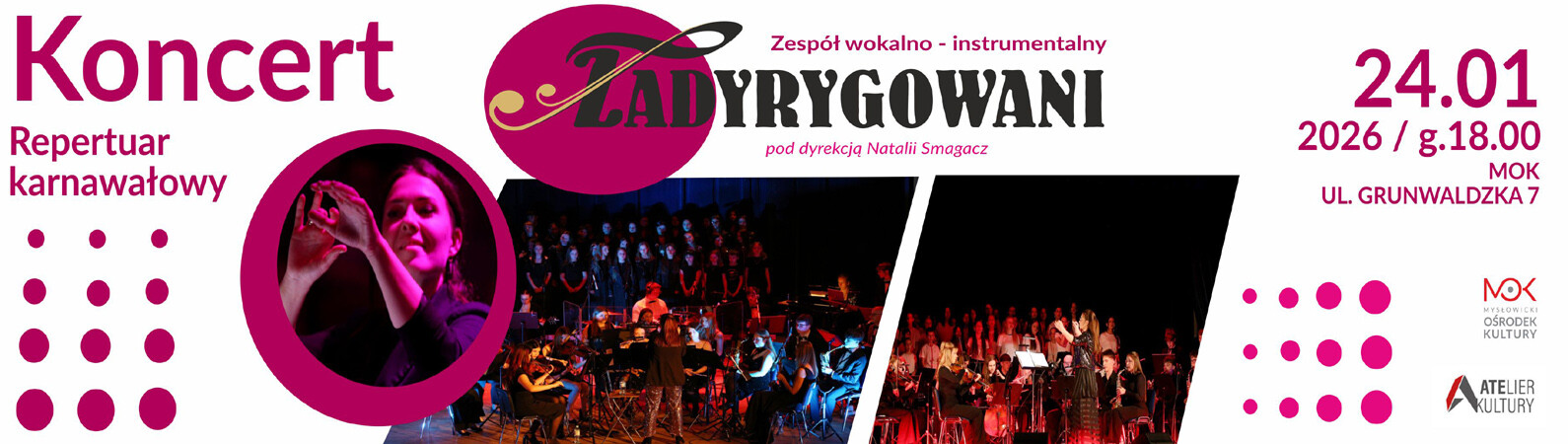 Zapraszamy na wyjątkowy koncert zespołu Zadyrygowani, który zabierze publiczność w muzyczną podróż pełną energii, radości i karnawałowego klimatu. To wydarzenie, które łączy pokolenia i pokazuje, jak wielką siłę ma wspólne muzykowanie.